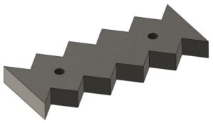 Sposób wykonania obróbki cieplnej łączy w sobie zarówno wytrzymałość jak i odporność na zużycie, w zrównoważonym stosunku. Przeciw nóż hartowany jest w całej objętości, oznacza to, że będzie zużywał się równomiernie przez cały okres użytkowania.