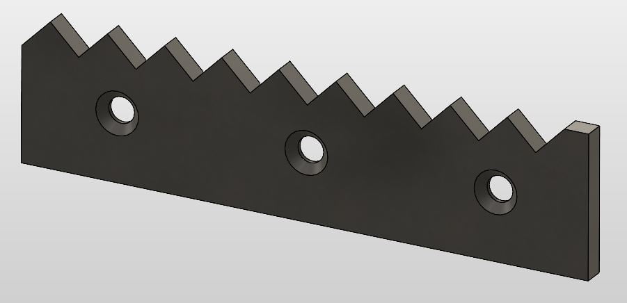 Sposób wykonania obróbki cieplnej łączy w sobie zarówno wytrzymałość jak i odporność na zużycie, w zrównoważonym stosunku. Przeciw nóż hartowany jest w całej objętości, oznacza to, że będzie zużywał się równomiernie przez cały okres użytkowania.